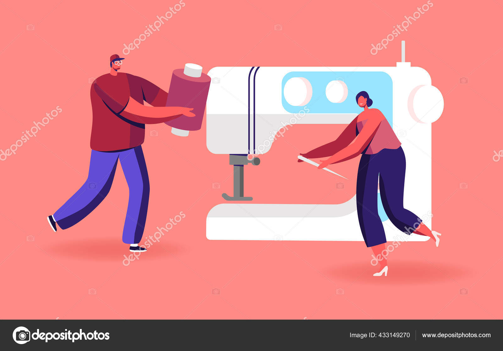 Ilustración de Los Personajes De Alcantarillado En Proceso De Creación De Prendas De Vestir Modistas Costureras Trabajo En La Máquina De Coser En Atelier O Fabric Factory Industrial Textil Ropa Fabricación Dibujos