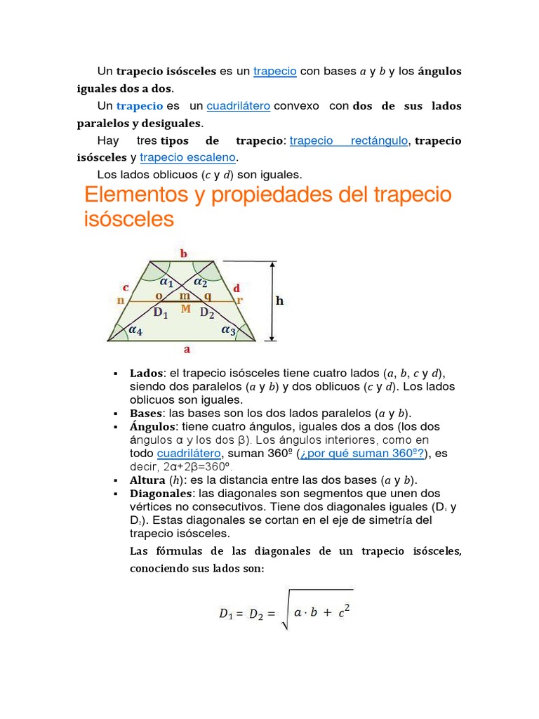 Cuales son las📌 PROPIEDADES DEL TRAPECIO ISOSCELES ANGULOS AREA PERIMETRO DIAGONAL - YouTube