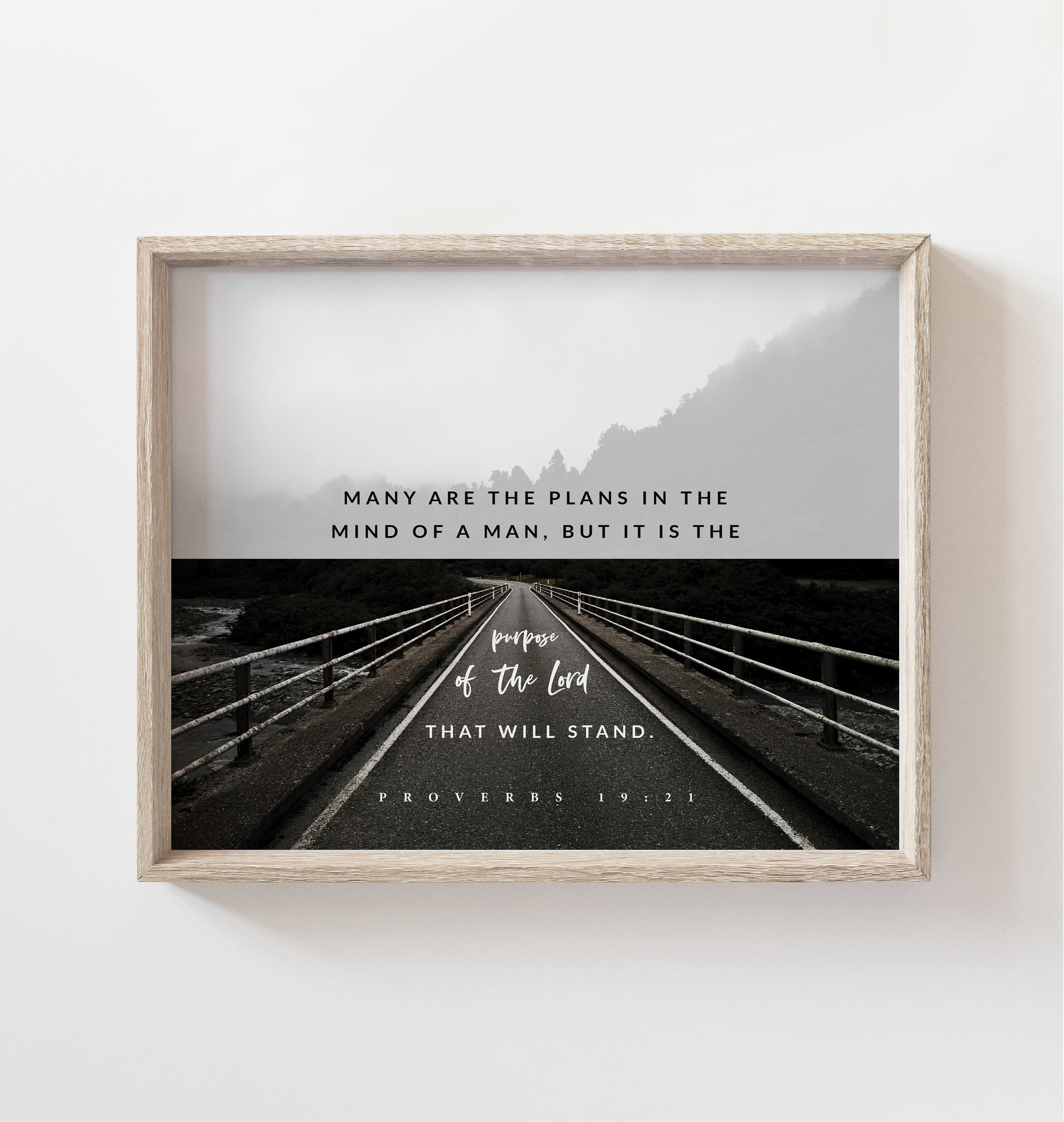 Proverbios 19:21 Propósito del Señor Versículo bíblico Arte de pared imprimible, Regalo cristiano, Impresión descargable de las Escrituras, 8x10, 11x14, Arte horizontal - Etsy España