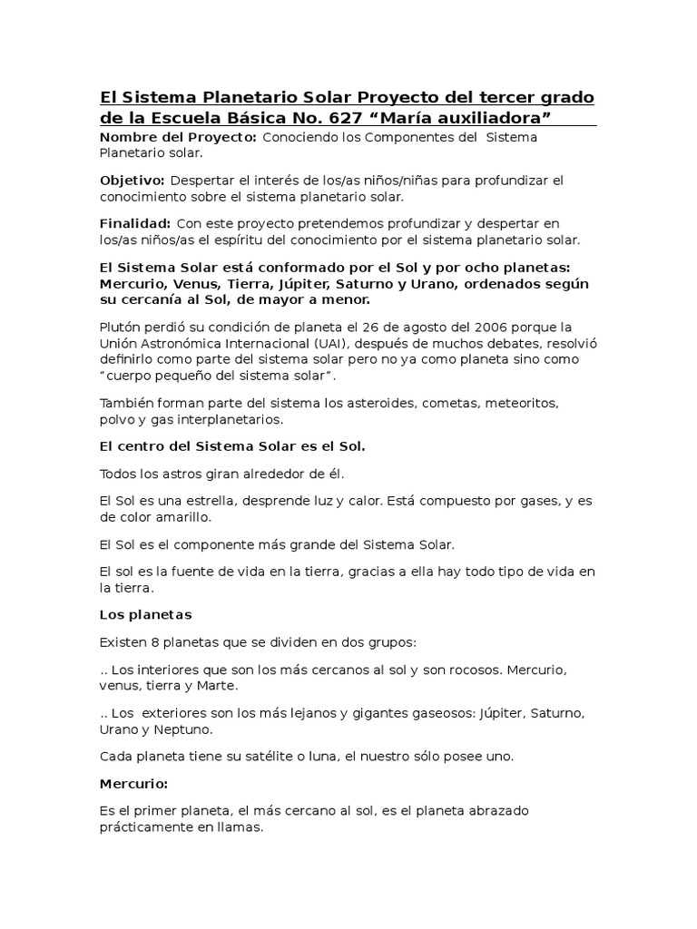 Explorando los componentes del Sistema Solar a través de un proyecto escolar de tercer grado | PDF | Planetas | Sistema solar