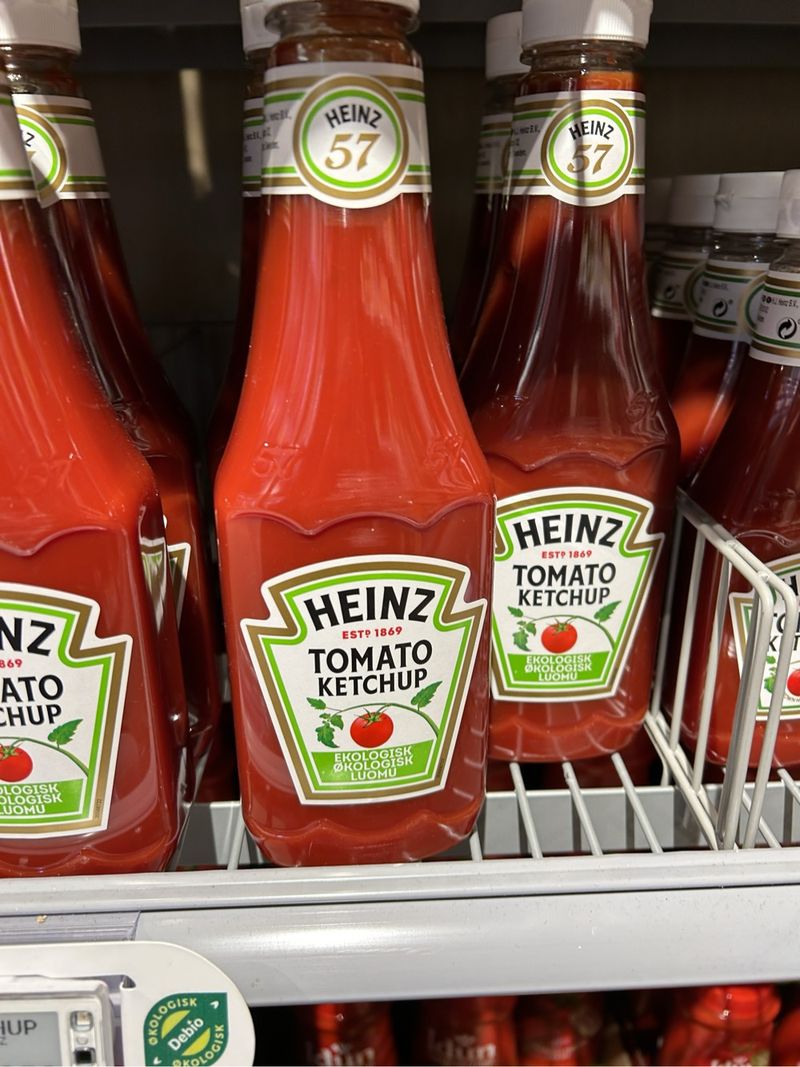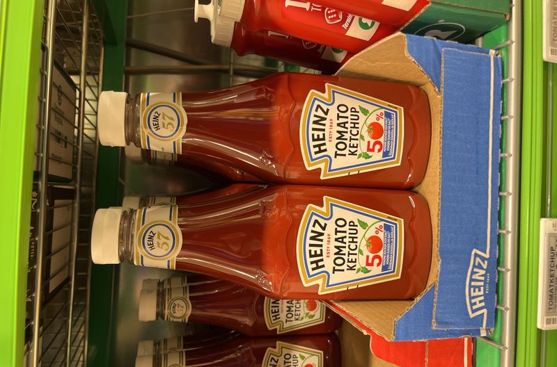 La etiqueta de esta botella de catsup Heinz está chueca por una razón
