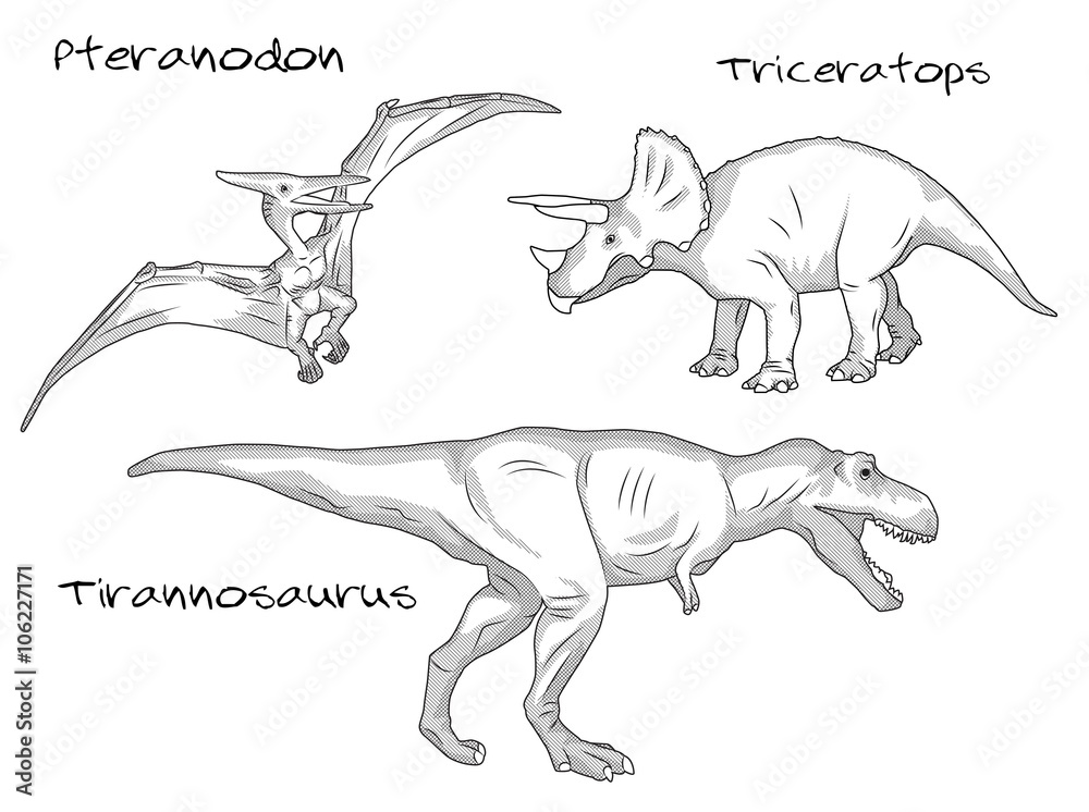 Dinosaur And Prehistoric Reptile Animal Sketches Stock ...