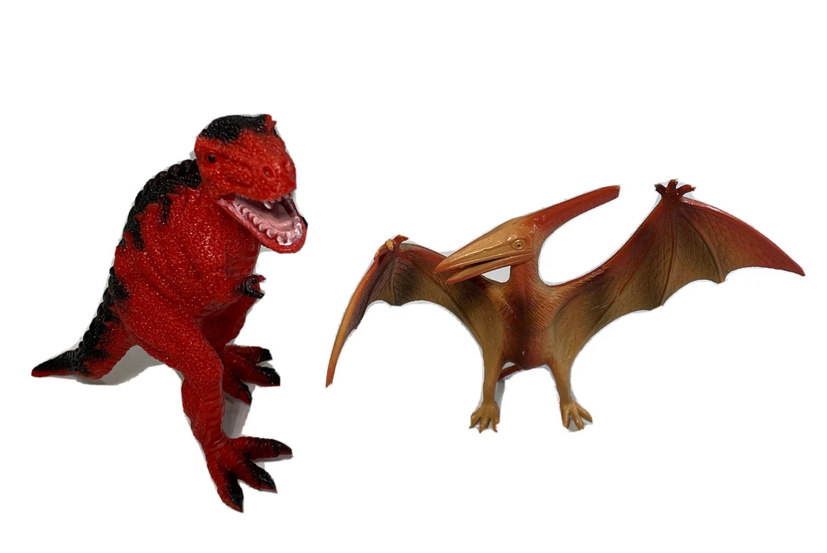 T-Rex Red Dinosaur Tyrannosaurus 5” & Pteranodon 3.5” Figure Toy ...