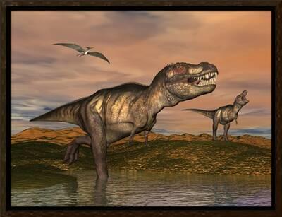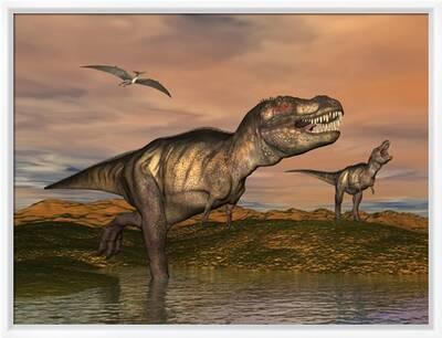 Tyrannosaurus Rex Dinosaurs with Pteranodon Bird Flying Above' Art ...