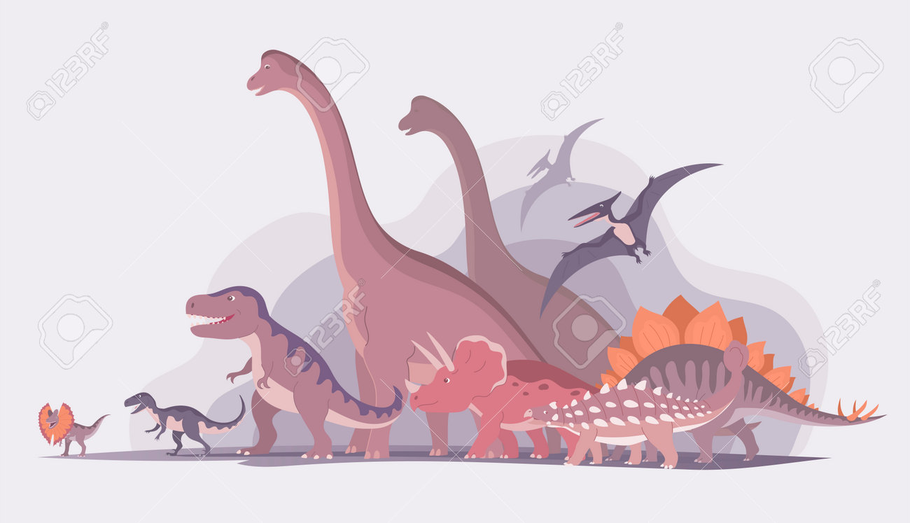 Group Of Dinosaurs. T Rex, Brachiosaurus, Pteranodon, Stegosaurus ...