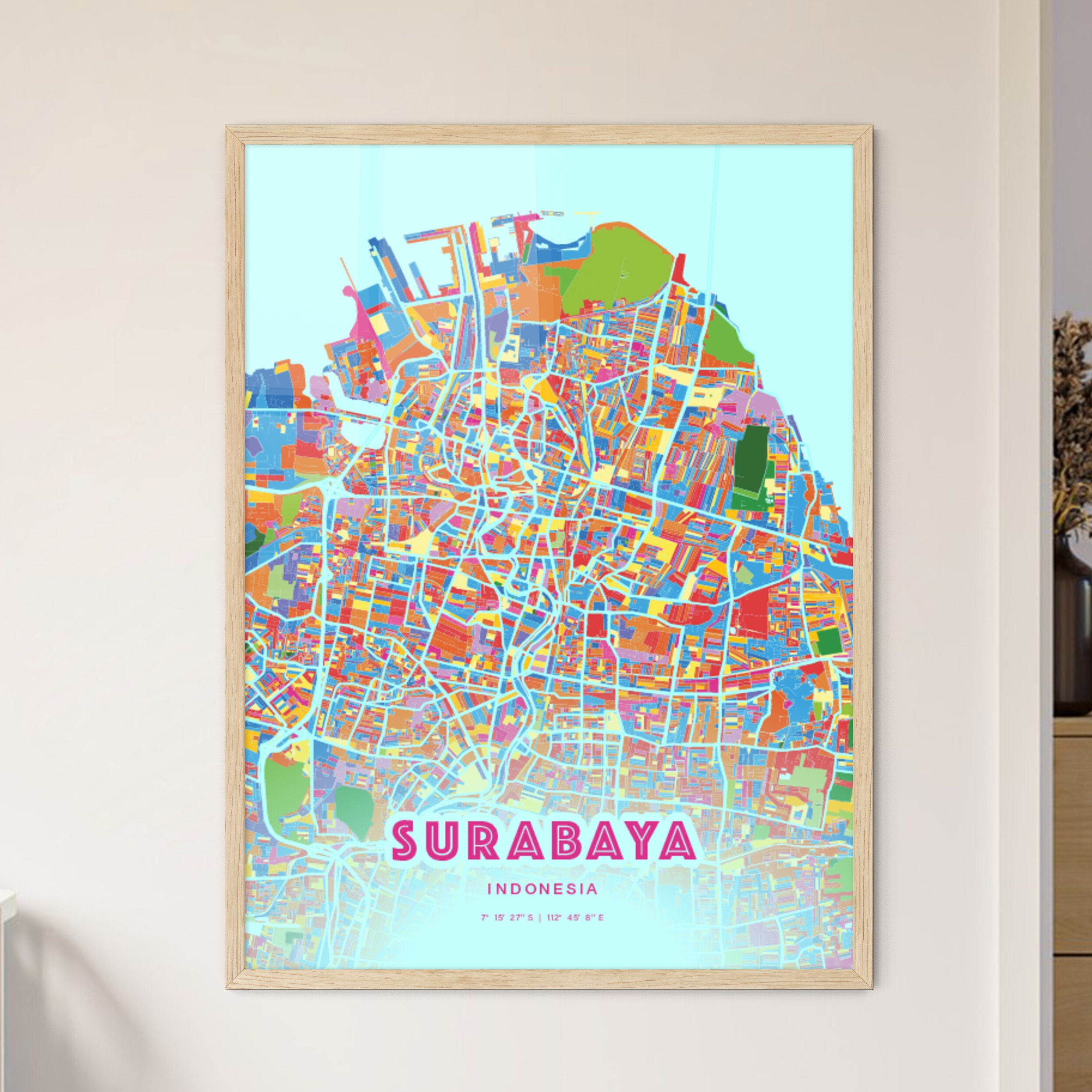 Mapa artístico colorido y loco de SURABAYA INDONESIA póster - Etsy México