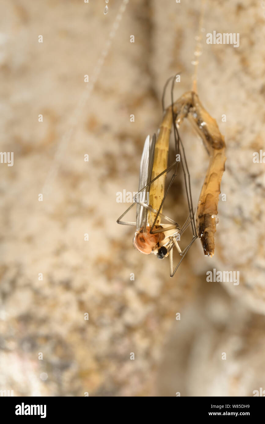 Mosquito de hongo (Arachnocampa luminosa) que emergen de la pupa, cueva cerca de Las Cuevas de Waitomo Glowworm, cerca Te Kuiti, Isla del Norte, Nueva Zelanda, el mes de julio Fotografía de