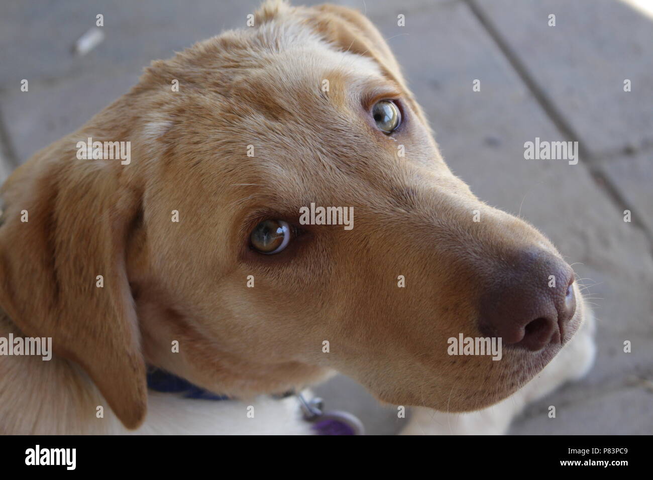 Labrador Amarillo Comienza A Secretan Saliva En Previsión De La Cena; Dudley Labrador; Nariz Rosa Marrón; Ojos Amarillos Fotos, retratos, imágenes y fotografía de archivo libres de derecho. Image 8014681