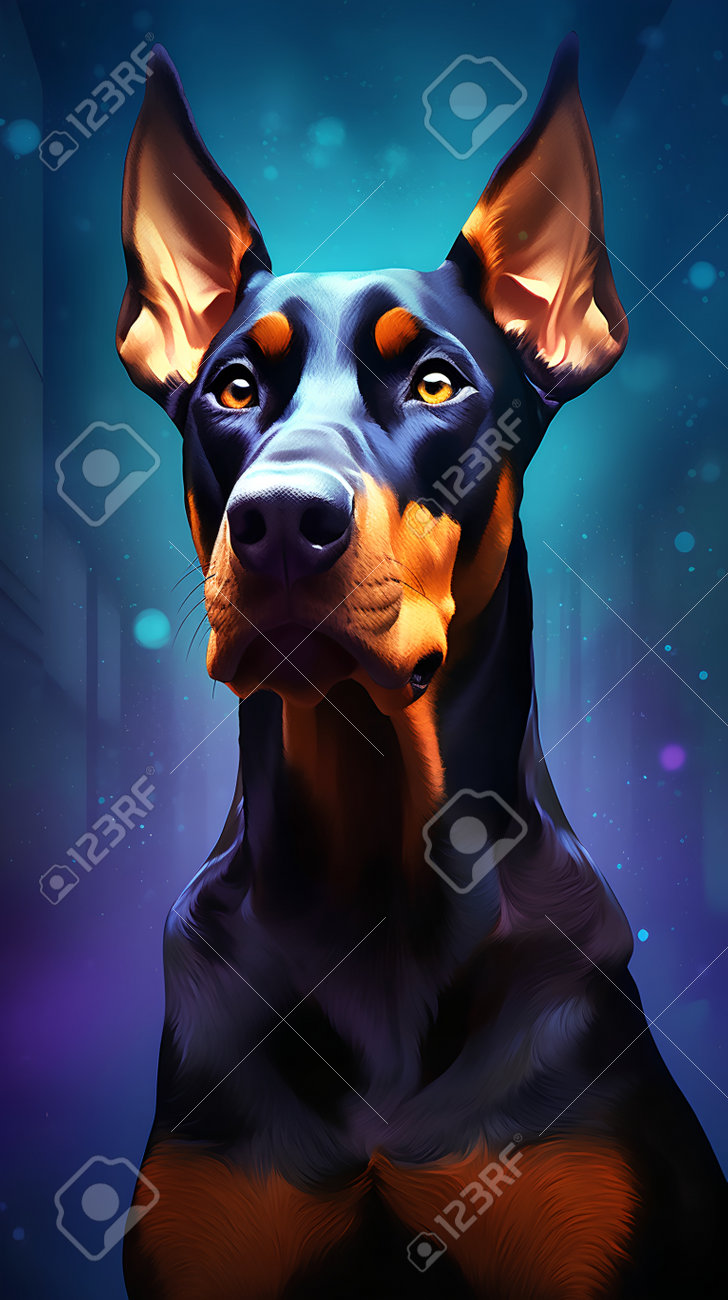 Descarga Retrato de perro Doberman negro y azul PNG En Línea - Creative Fabrica