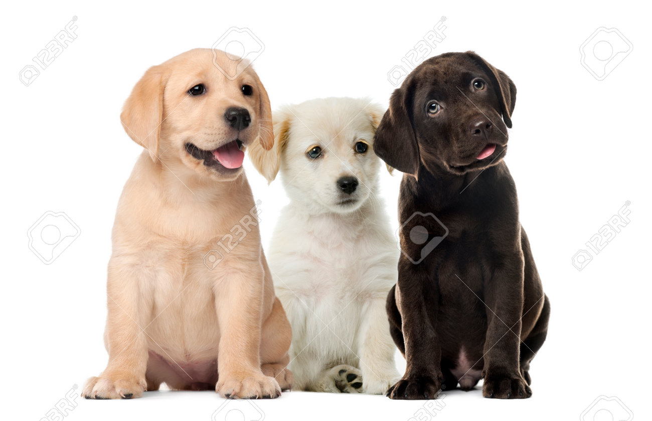 Grupos De Perros, Cachorros De Labrador, Cachorro Labrador Retriever Chocolate, Delante De Un Fondo Blanco Fotos, retratos, imágenes y fotografía de archivo libres de derecho. Image 111466671