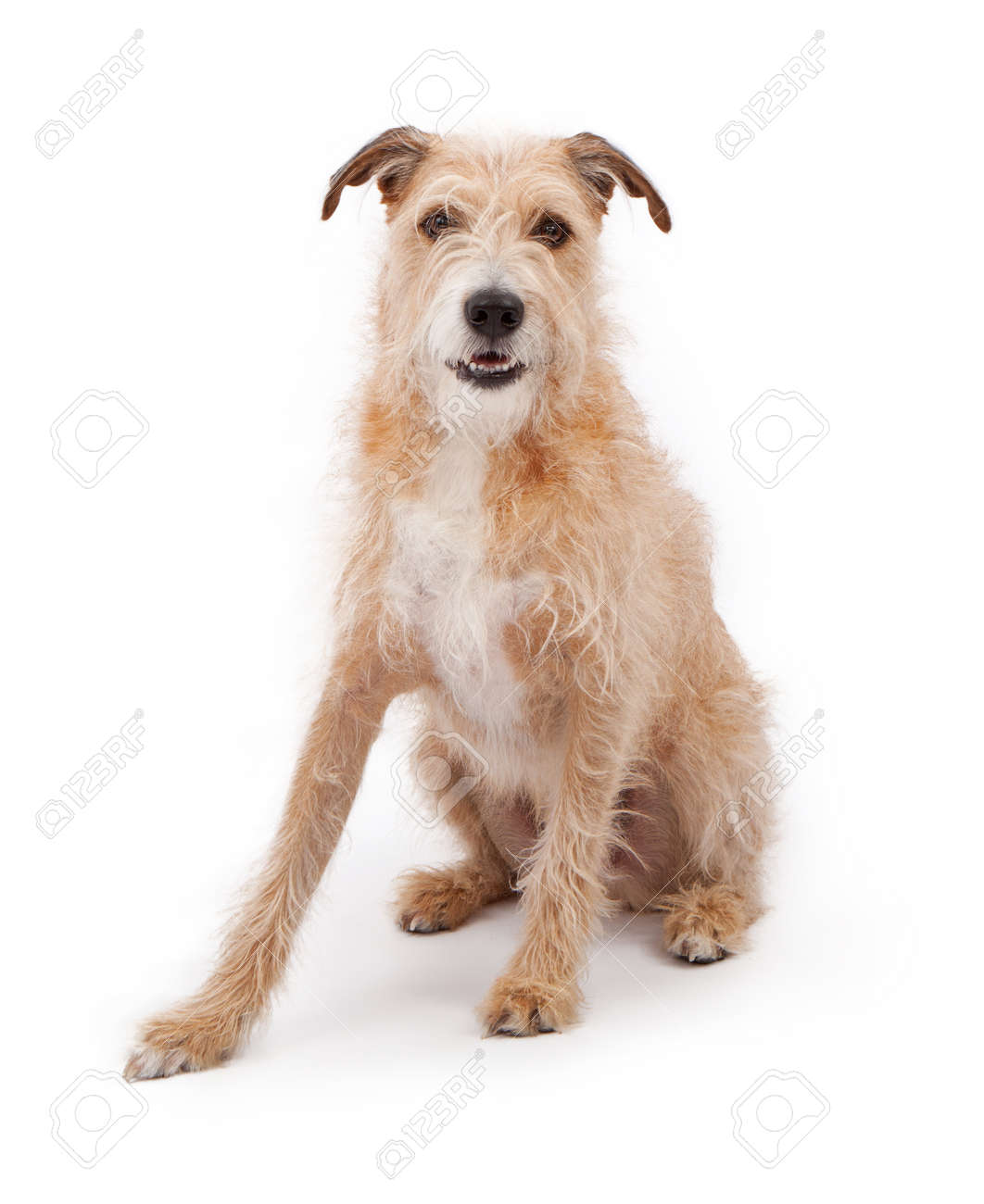 Un Gran Perro De Raza Mixta De Pelo De Alambre Contra Un Telón De Fondo Blanco Fotos, retratos, imágenes y fotografía de archivo libres de derecho. Image 22890146