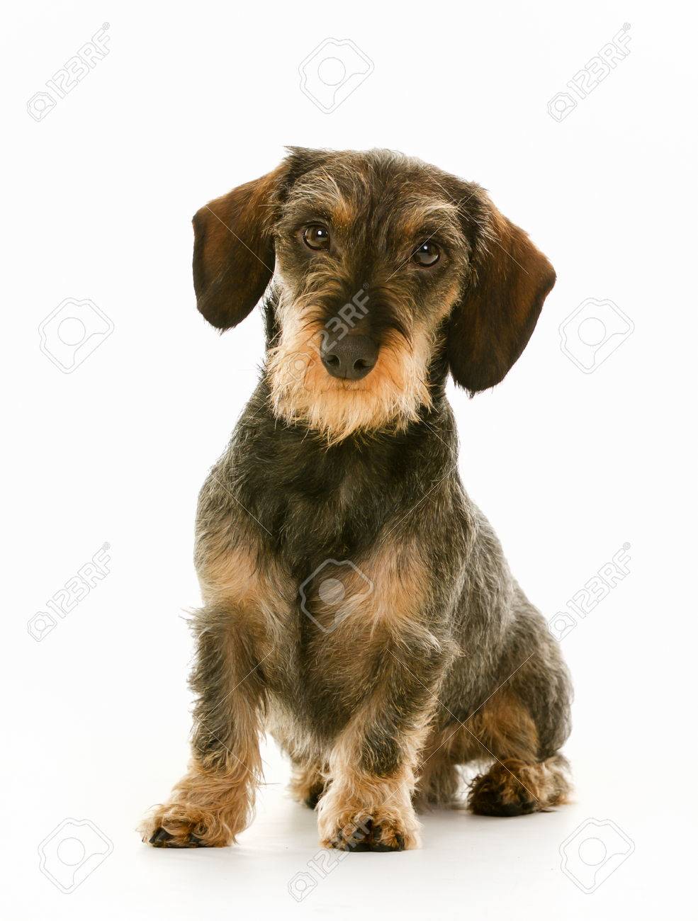 De Pura Raza De Perro Marrón Perro Salchicha De Pelo Duro Aislado En El Fondo Blanco En El Estudio. Fotos, retratos, imágenes y fotografía de archivo libres de derecho. Image 52868455