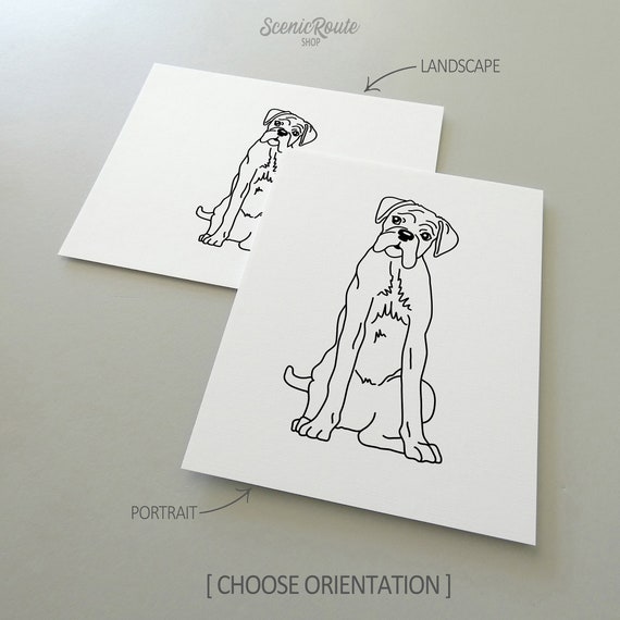 Impresión de arte de pared de perro boxeador / Dibujo de arte de línea minimalista en blanco y negro / Impresión física lista para enmarcar / Retrato de mascotas / Memorial de mascotas - Etsy México