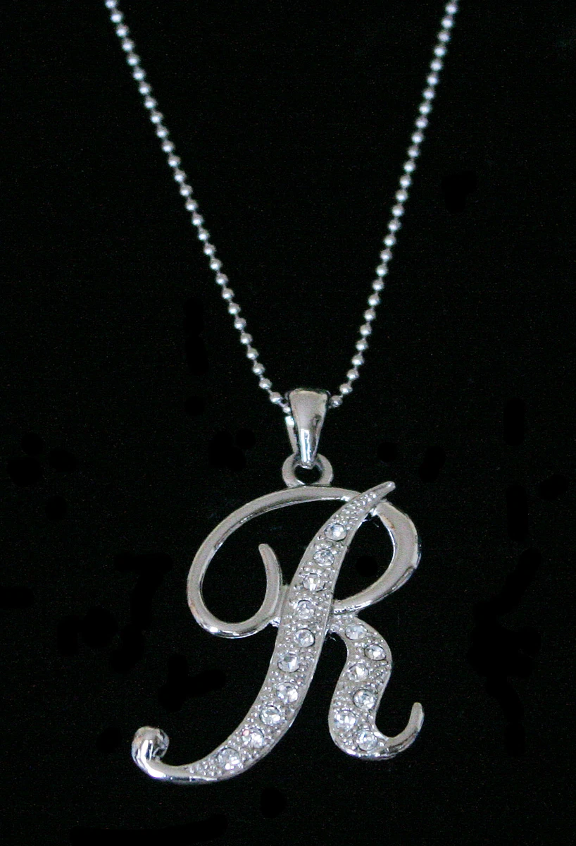 R" LETTER INITIAL ALPHABET PENDANT CHARM NECKLACE CLEAR CRYSTALS LARGE SILVER T | eBay