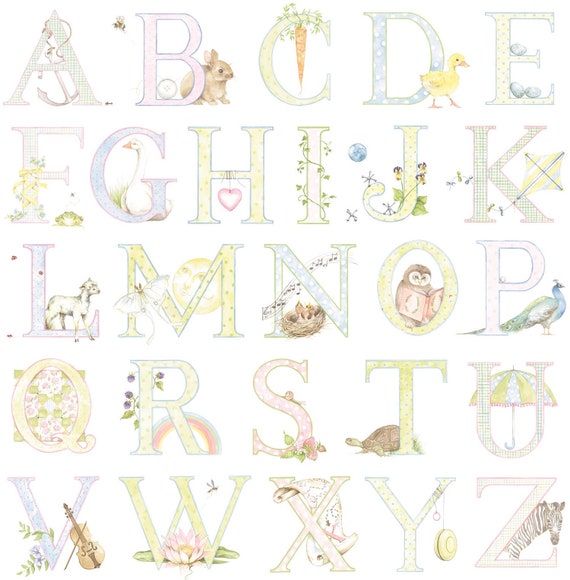 Fondo de pantalla del alfabeto de letras de acuarela para la habitación de los niños, mano de letras, guardería de la habitación - Etsy España
