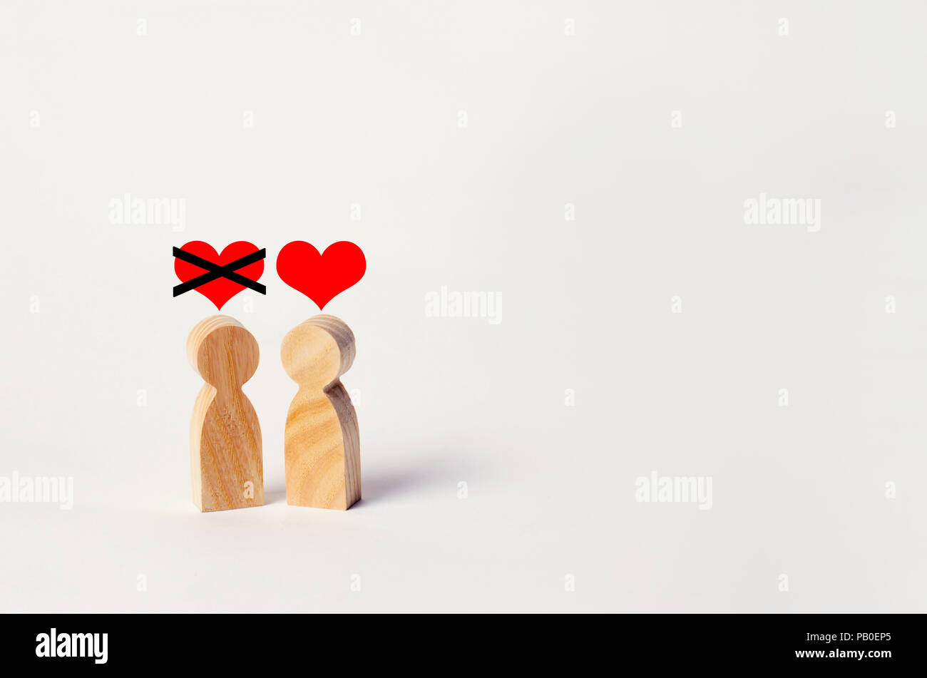 El amor no correspondido. El rechazo del reconocimiento en el amor. La negativa de las relaciones, la ruptura de las relaciones. Corazón roto. Relación complicada, el primer amor, quarr Fotografía de stock -
