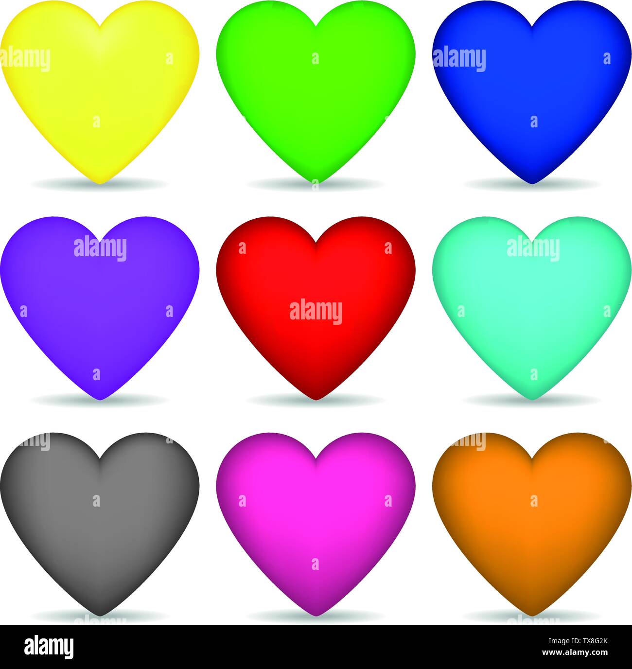 Colección De Corazones De Colores Sobre Un Fondo Blanco Ilustraciones svg, vectoriales, clip art vectorizado libre de derechos. Image 52085208