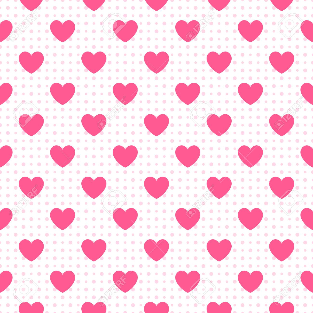 Patrón Geométrico Transparente Con Corazones. Ilustración Para El Diseño Romántico. La Textura Infinita Para Imprimir Sobre Tela, De Fondo Página Web Y Papel O Invitación. Los Colores Blanco, Rojo Y Rosa. Fotos,