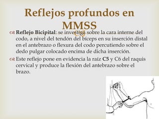 Reflejos osteotendinosos- Nicole Gorena - Reflejo bicipital Reflejo tricipital Se realiza en el - Studocu