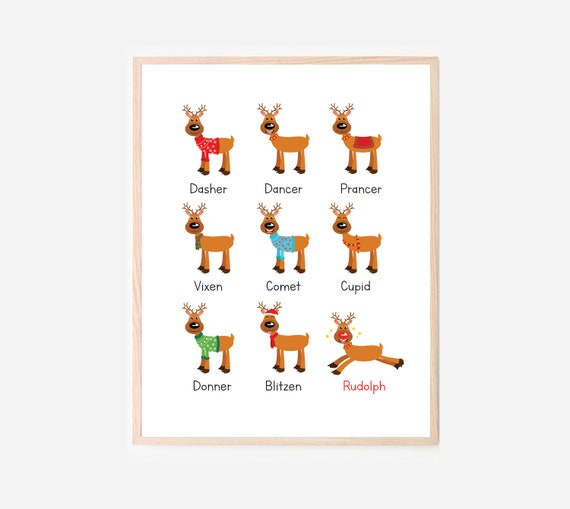 Rudolph red nariz reno pared arte niños decoración Navidad cartel de la casa de juegos homeschool Pre-escuela Montessori estacional fiesta de vacaciones Villa Villa - Etsy México