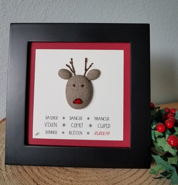 Rodolfo el reno de nariz roja Rudolph Pebble Art Arte navideño - Etsy España