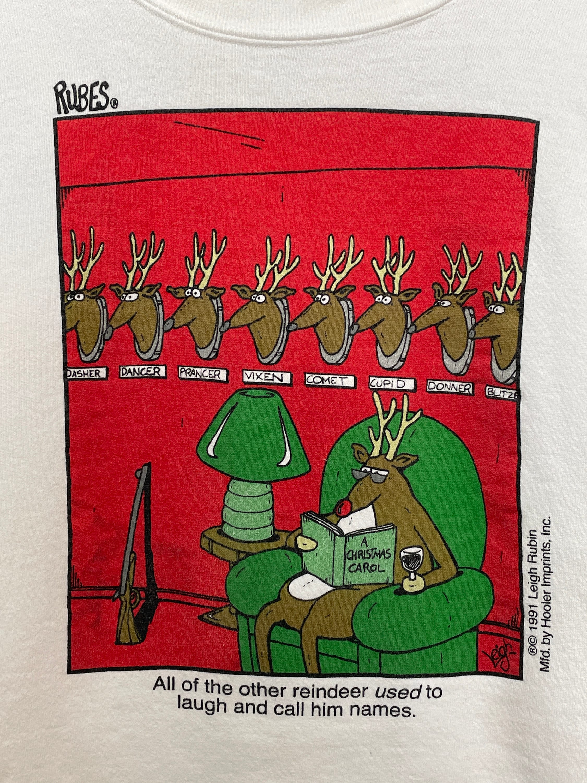 Vintage 1991 Rudolph el reno de nariz roja Ilustración cómica hecha en EE.UU. Sudadera gráfica navideña con cuello redondo se adapta a adultos medianos - Etsy México