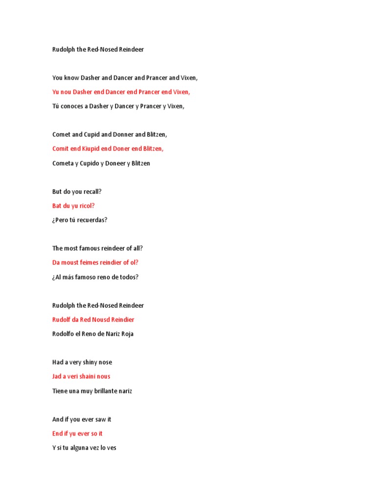 Rudolph The Red-Nosed Reindeer (Rodolfo, El Reno de La Nariz Roja) | PDF