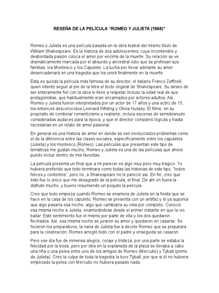 Reseña de La Película "Romeo y Julieta (1968) " | PDF