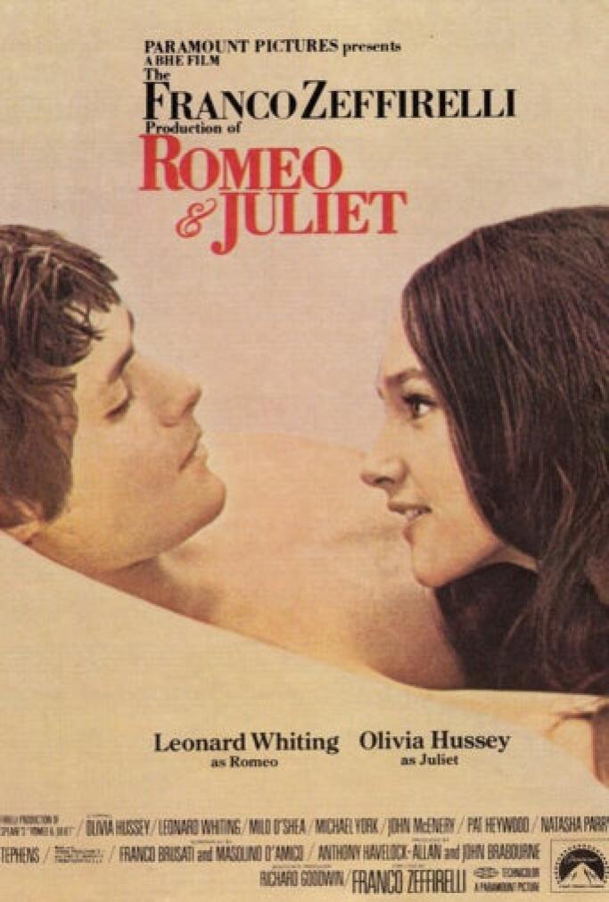 El título de la película original: Romeo y Julieta. Título en inglés: Romeo y Julieta. El director de cine: Franco Zeffirelli. Año: 1968. Estrellas: William Shakespeare; Olivia Hussey; Leonard Whiting. Crédito: Paramount