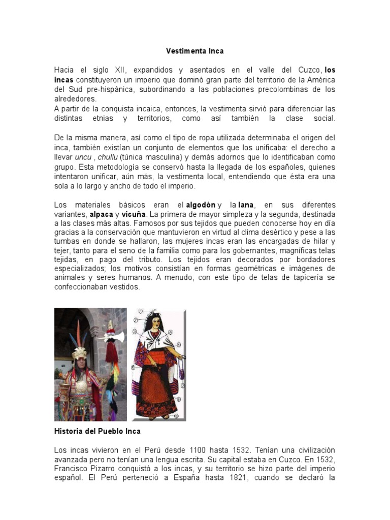 Vestimenta Inca | PDF | Imperio Inca | Perú