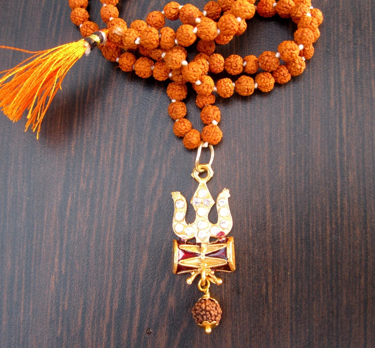 5 MUKHI RUDRAKSHA FIVE FACE RUDRAKSH MALA 7 MM WITH TRISHUL DAMARU PENDANT- AA++ | eBay