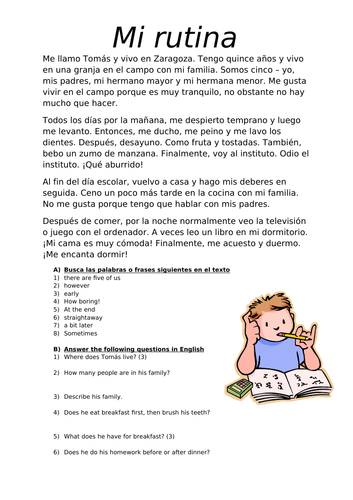 Mi rutina comprehension task | Teaching Resources