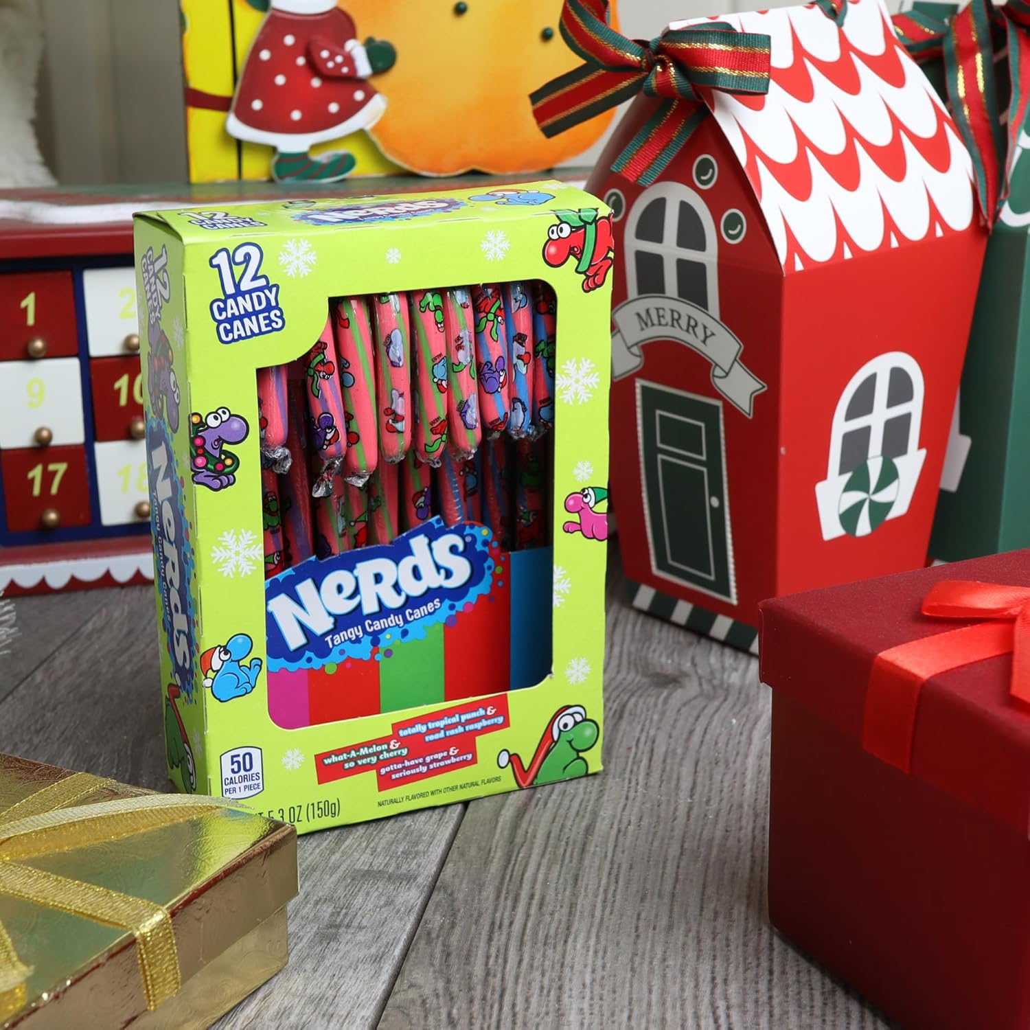 Bastones de caramelo Nerds de edición limitada, golosinas navideñas con sabor a frutas, rellenos de calcetines y decoraciones comestibles para árbol – Yaxa Colombia