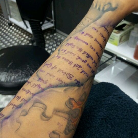 WiL Black Tattoo on X: "tatuagem escrita salmo 23 em inglês art #BlackTattoo https://t.co/JSHkzu6G8U" / X