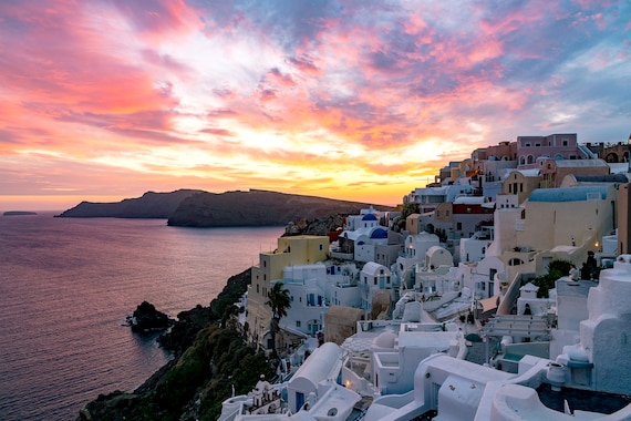 Sunset Over Santorini 2 Oia Greek Islands Landscape Photography Greece Mediterranean Sea Cliffs Large Format Print Fine Art - Etsy