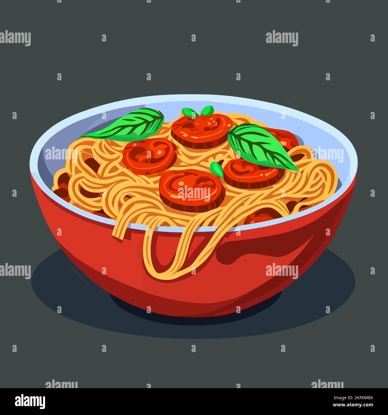 Un dessin vectoriel d'un bol de spaghetti à la sauce tomate et au basilic isolé sur fond gris Image Vectorielle Stock - Alamy