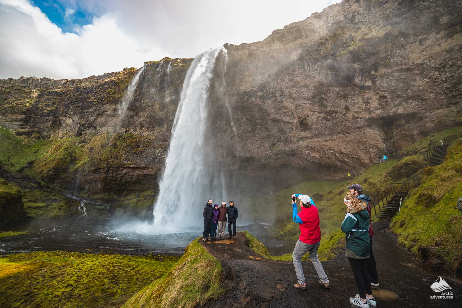 People Under Seljalandsfoss Waterfall in Iceland Free Photo