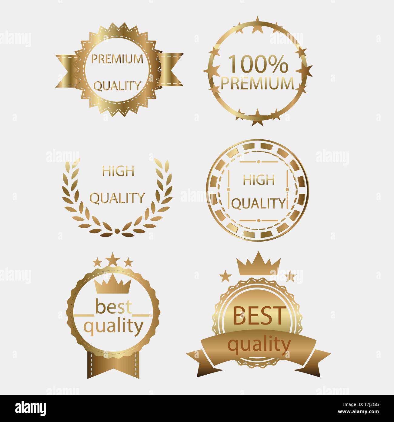 Insignia de oro sello medalla de oro certificado del Sello de calidad vectorial diseño conjunto de metal Imagen Vector de stock - Alamy