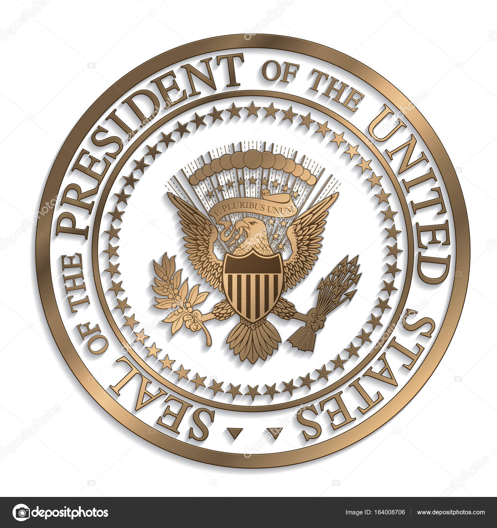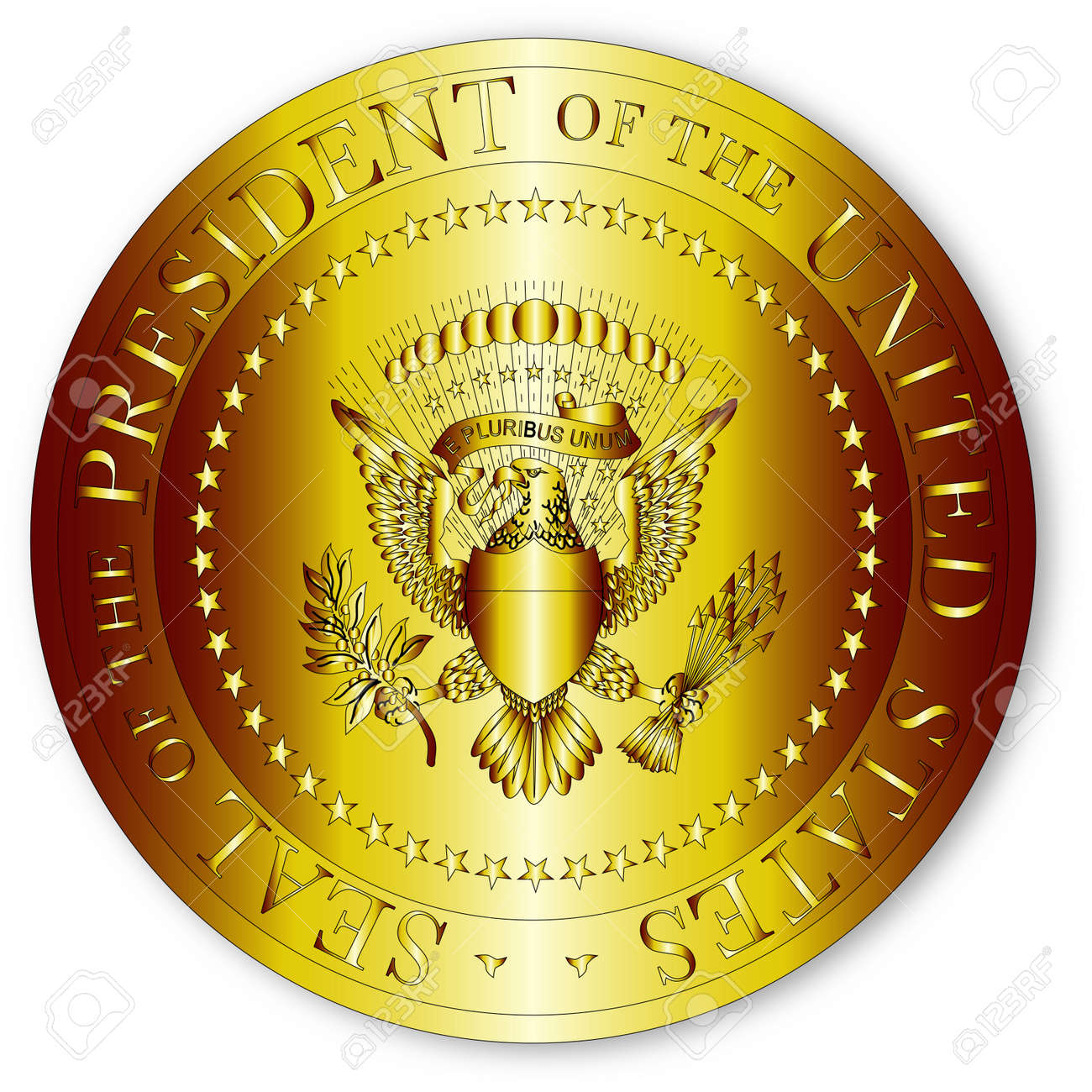 Una Representación Del Sello Del Presidente De Los Estados Unidos De América En Oro Ilustraciones svg, vectoriales, clip art vectorizado libre de derechos. Image 60708752