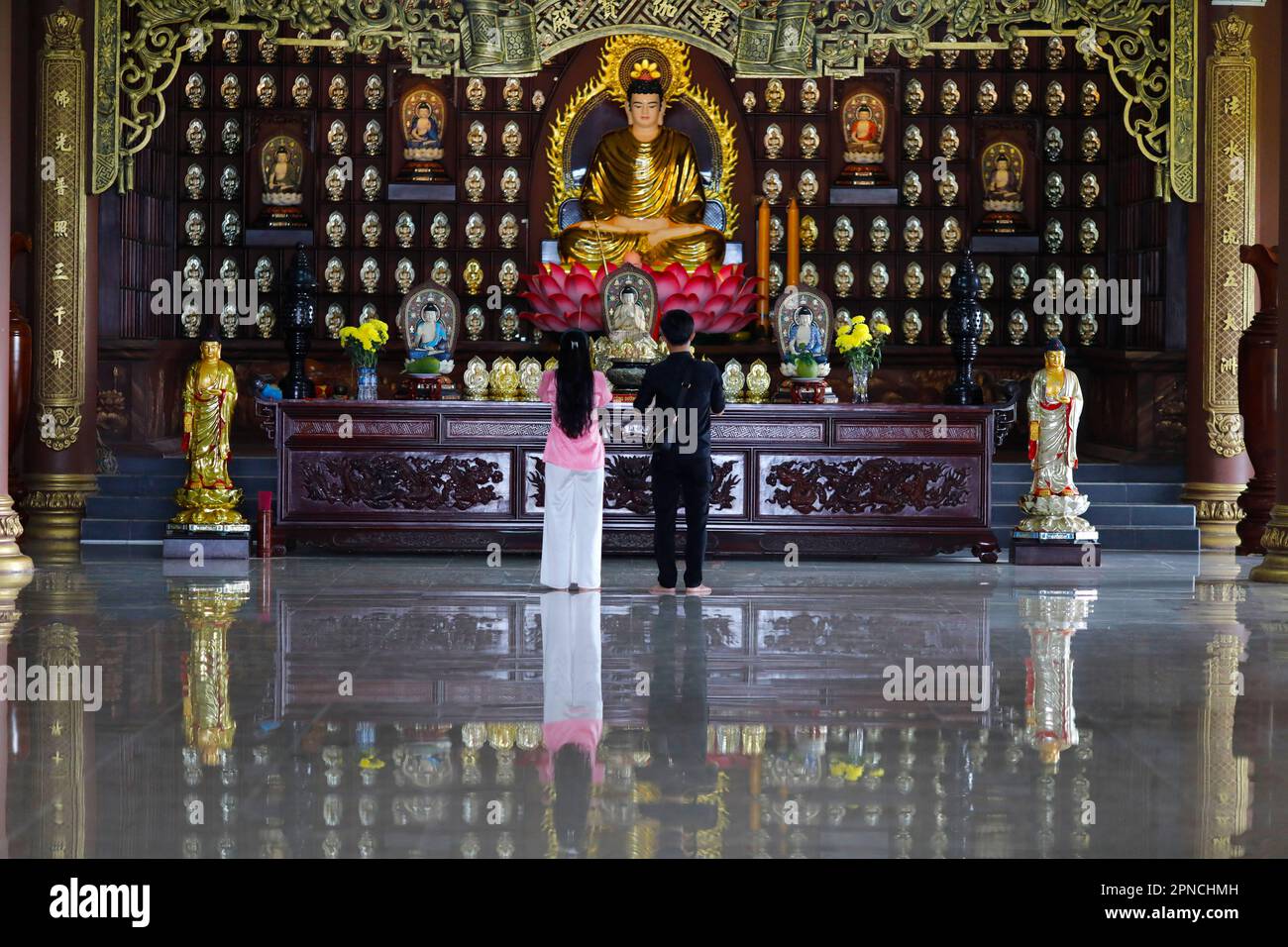 Templo budista Phat Quang. Siddhartha Gautama, el Buda Shakyamuni. Joven pareja rezando. Chau Doc. Vietnam Fotografía de stock - Alamy