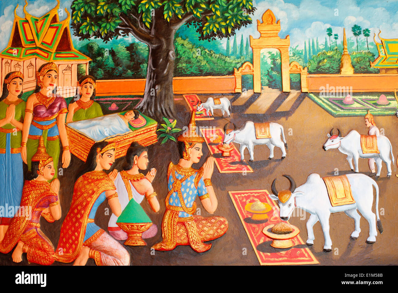 Preah Prom Rath Monasterio. La vida del Buda. El joven Siddhartha Gautama y su madre durante un festival de los agricultores Fotografía de stock - Alamy