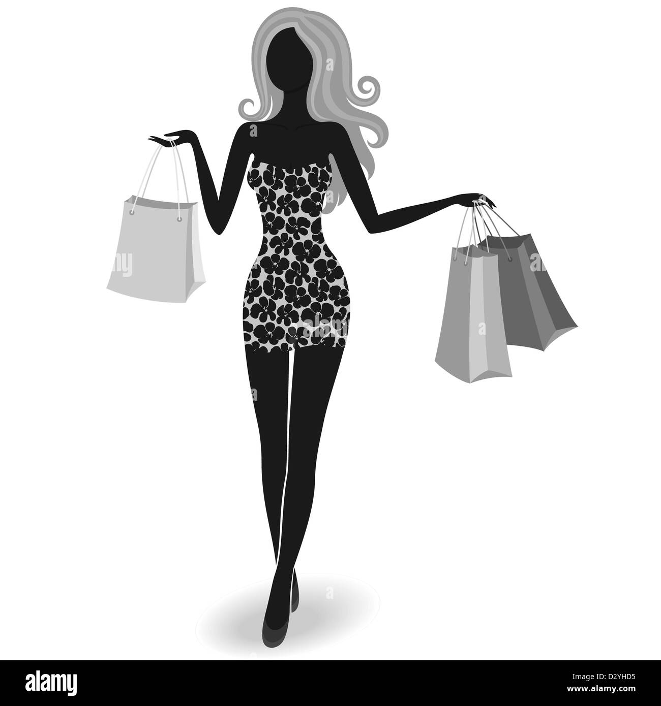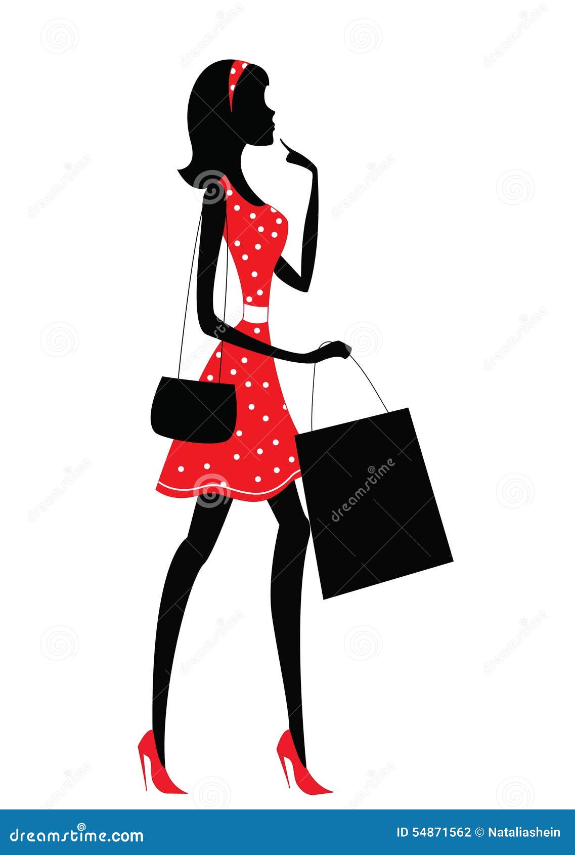 Silueta De Una Mujer De Moda De Las Compras Ilustración del Vector - Ilustración de muchacha, fondo: 40983419