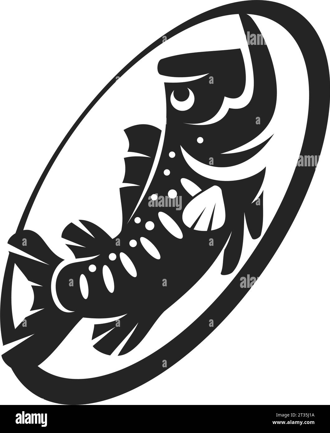 Silueta de pez bajo saltando, logotipo de pesca ilustración vectorial en blanco y negro 5677327 Vector en Vecteezy