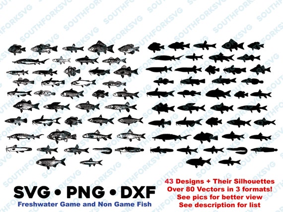 Juego de agua dulce y peces no deportivos Mega paquete de siluetas SVG PNG DXF diseño gráfico vectorial bajo tipo de pez lucio almizclado lechón de bagre - Etsy México