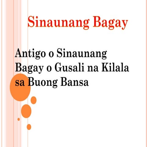 Mga Sinaunang Bagay ( Lesson in Sining VI ) | PPT