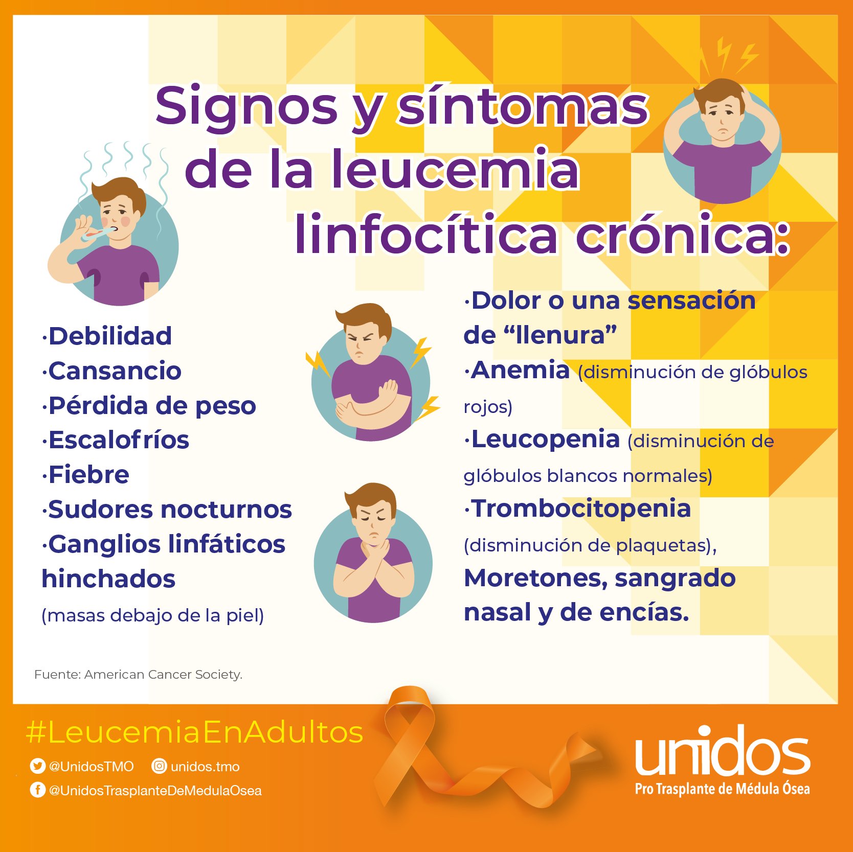 Unidos on X: "OJO. Los síntomas de la leucemia linfocítica crónica con frecuencia son sutiles al principio y aumentan y disminuyen sin razón aparente, pero no desaparecen y son progresivos. Algunas personas