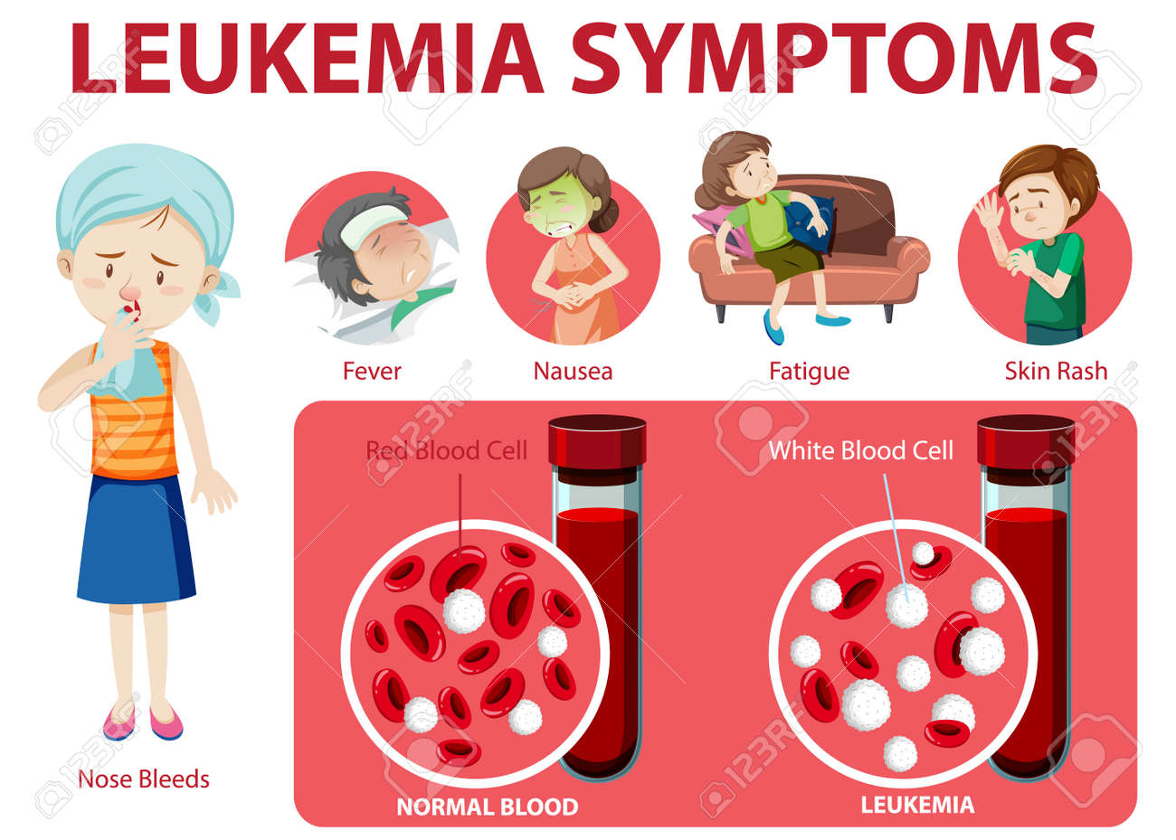 Síntomas de leucemia dibujos animados estilo ilustración infográfica Imagen Vector de stock - Alamy