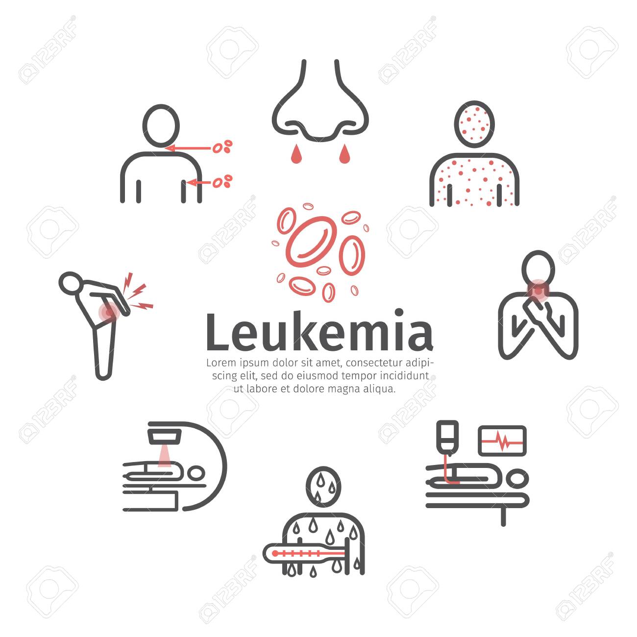Concepto Infographic De Los Síntomas De La Leucemia Enfermedad Peligrosa, Tratamiento Ilustración del Vector - Ilustración de inmune, linfa: 154498452