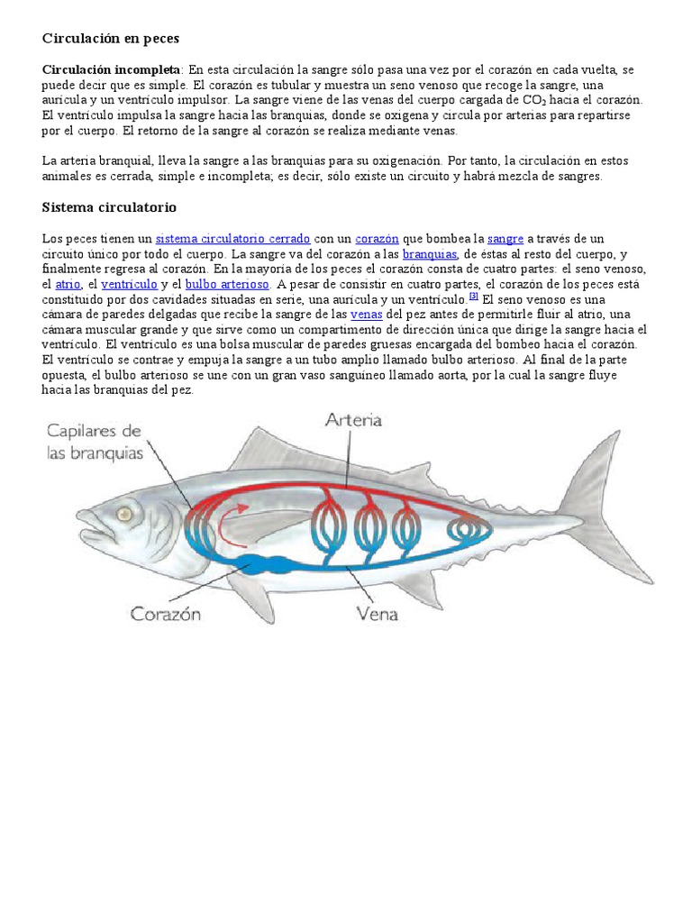 Circulación en Peces | PDF | Sistema circulatorio | Ventrículo (corazón)
