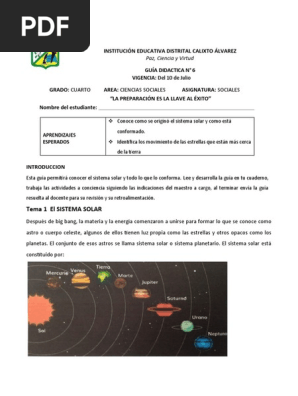 GUIA No 6 C. SOCIALES 4° | PDF | Sistema solar | Planetas